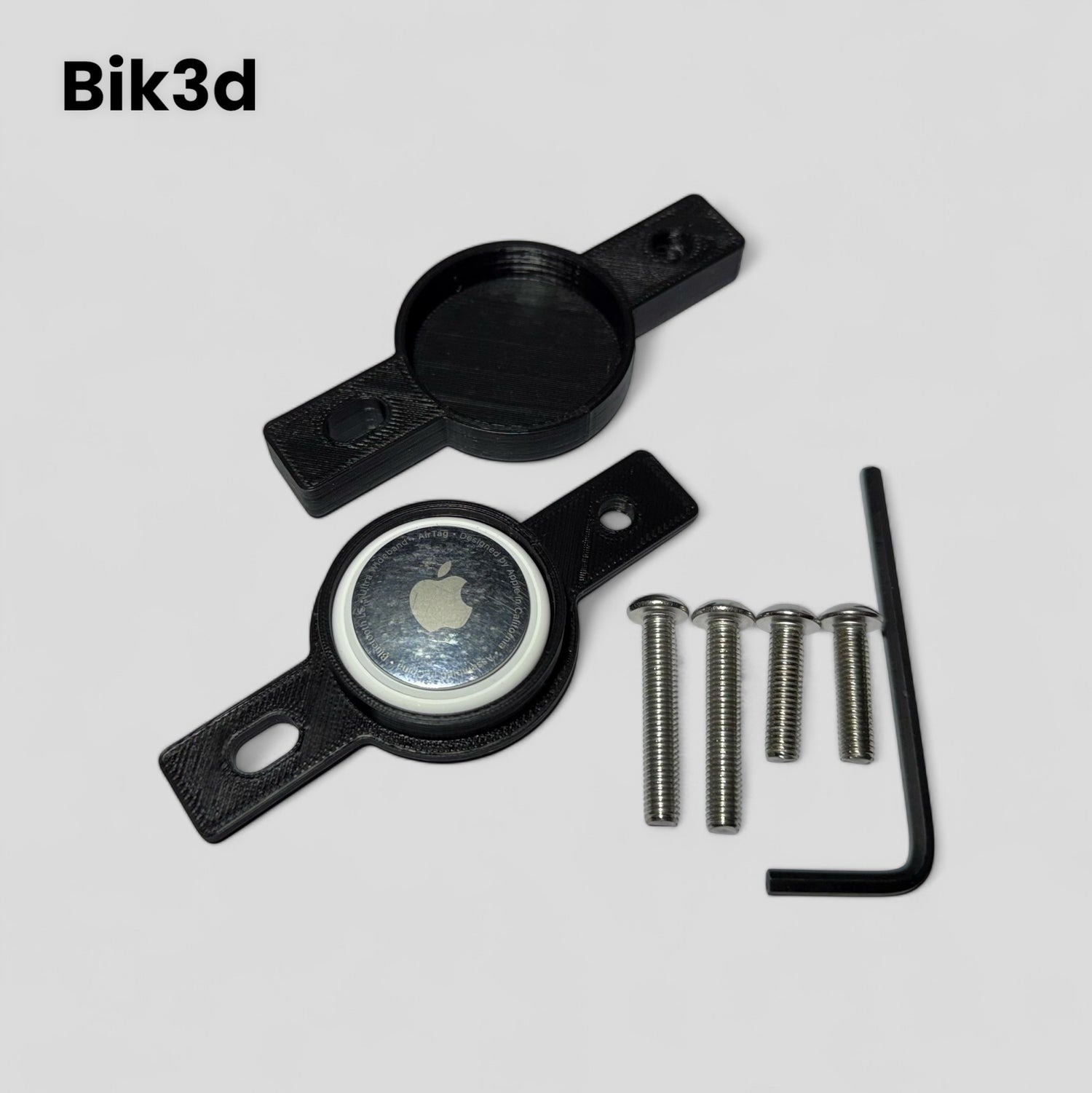 Our IPO Registered AirTag holder sits either between your water bottle and the bike frame or if you don’t have a bottle it sits on the frame using the existing bottle holder screw threads using supplied bolts.
